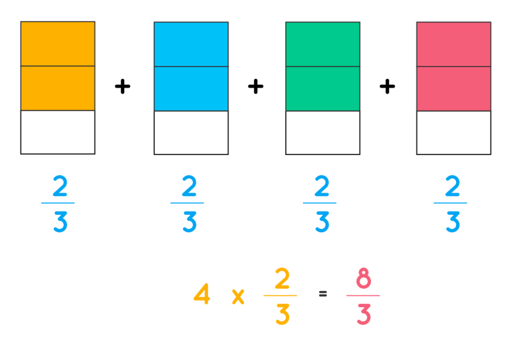 Last week, we concluded our unit on adding and subtracting fractions, including mixed numbers. Some students have requested a little more time with that assessment, so I have carved out that time on Tuesday of next week. This week, students will start new curriculum where they will work to understand what is happening with whole numbers, and then fractions, when we multiply them by a fraction. The most important piece of this unit is that students visually understand what is happening with a whole when we multiply it by a fraction. We will build on our prior understanding of adding fractions and tie repeated addition of fractions to multiplying fractions. A model of that conceptual understanding can be found below.