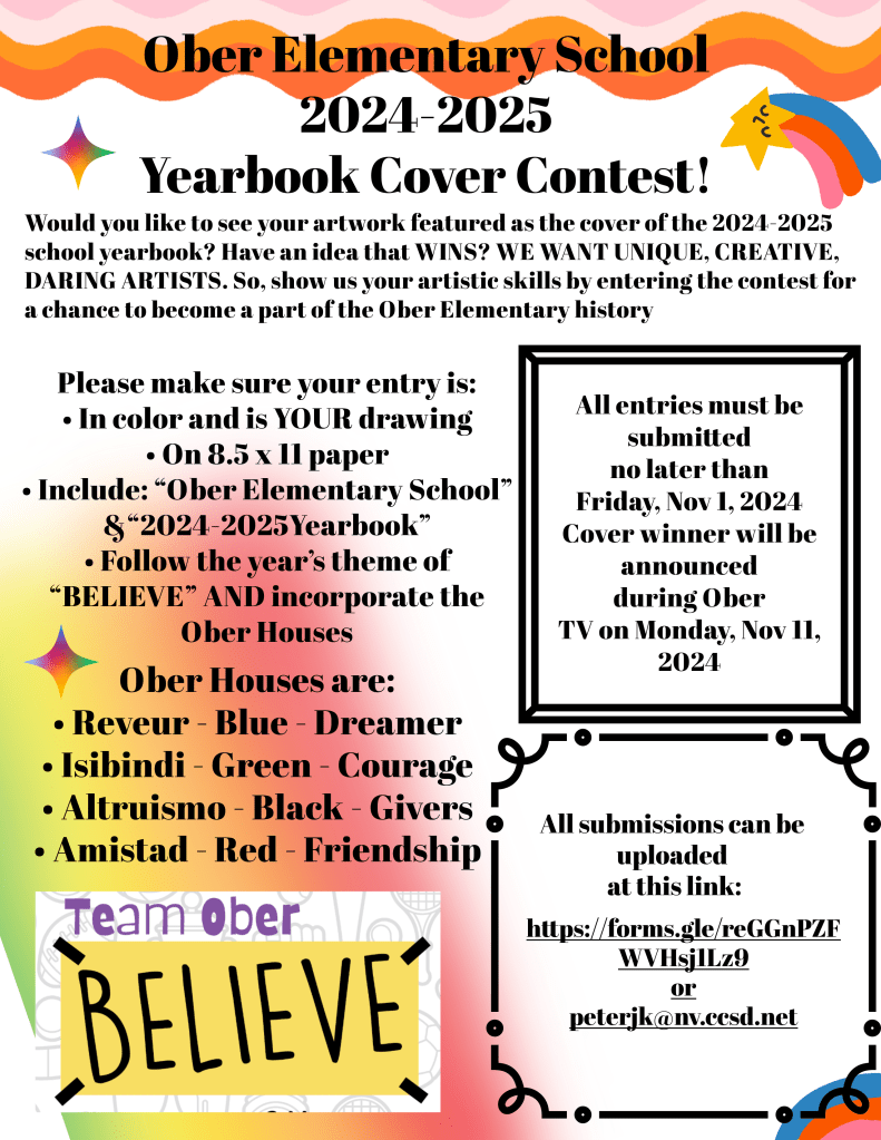 - The deadline for Yearbook Cover Contest submissions is November 1.