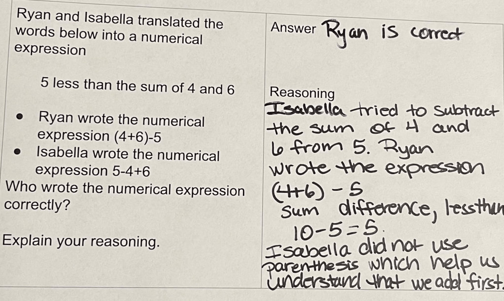 We dug into challenging 5th grade curriculum this week in both science and math. Students had the opportunity to learn that the size of objects in space is relative; for instance, Earth can seem both big and small when compared to other objects in space. In math, we finished up our unit on order of operations and students completed their CYU (Check for Understanding) on Friday in which they checked their own understanding in preparation for our assessment on Monday. The purpose of our CYUs are for students to check their own understanding in our learning progression. Friday’s CYU required a lot of thinking, and after we finished, students were asked to reflect on where they were in terms of understanding the order of operations and written expressions.